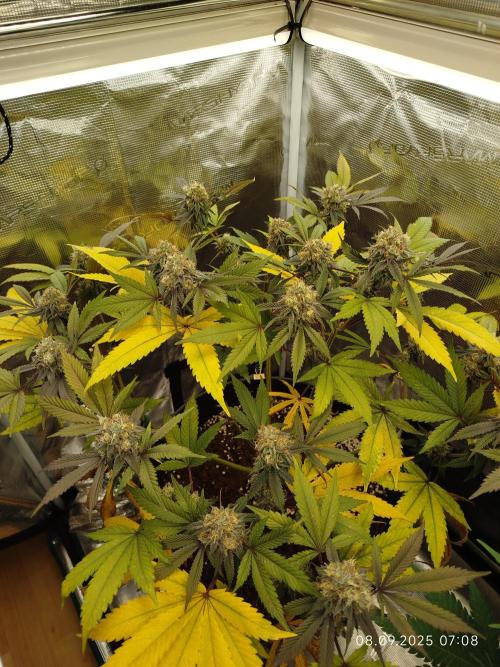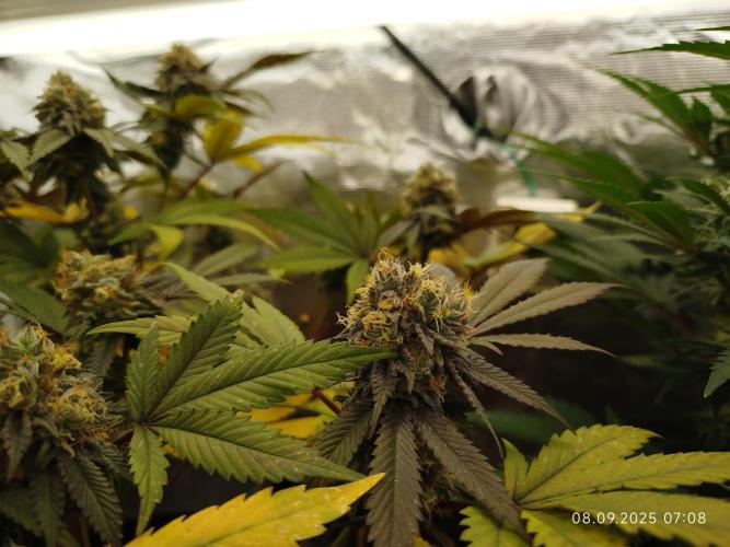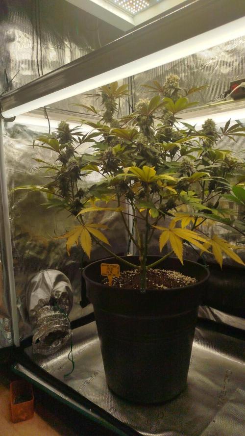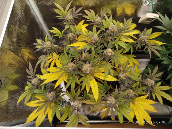 Die Pflanze hat Signal zur Ernte gegeben. Somit war der Teil mit den Tops nach 45 Tagen Blüte durch. Der Rest bleibt, da dieser nicht soweit ist.