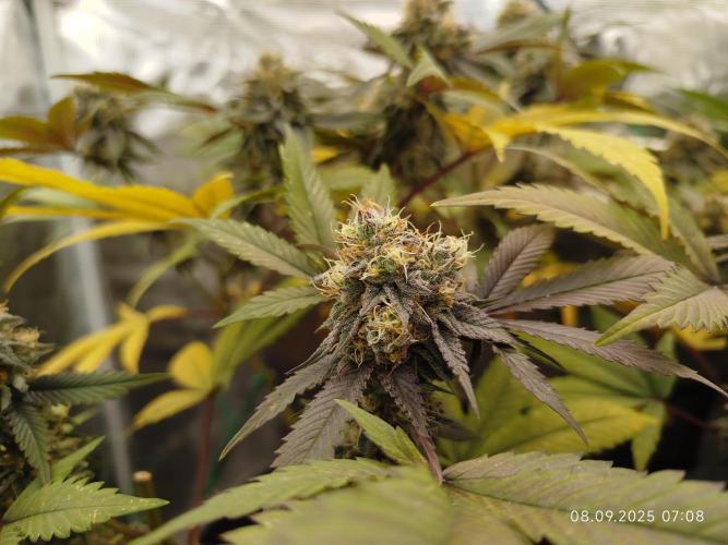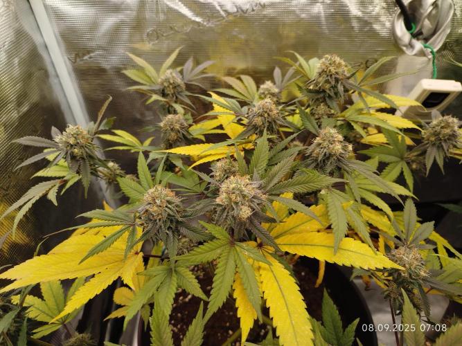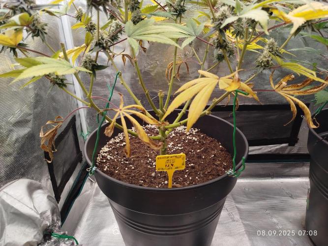 Zeigt, das die Genetik gut erzogen ist, dennoch ein kleines bisschen ärgerlich, da wir nachkommen haben wollen. Die Erste Rotfärbung an den Blättern beginnt bereits, ob sie dem Stress zuzuschreiben ist, bleibt abzuwarten. Im nächsten Durchlauf wird sich das schon zeigen. Für den ersten Grow dieses Phänotyps ganz in Ordnung 👌🏻