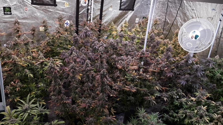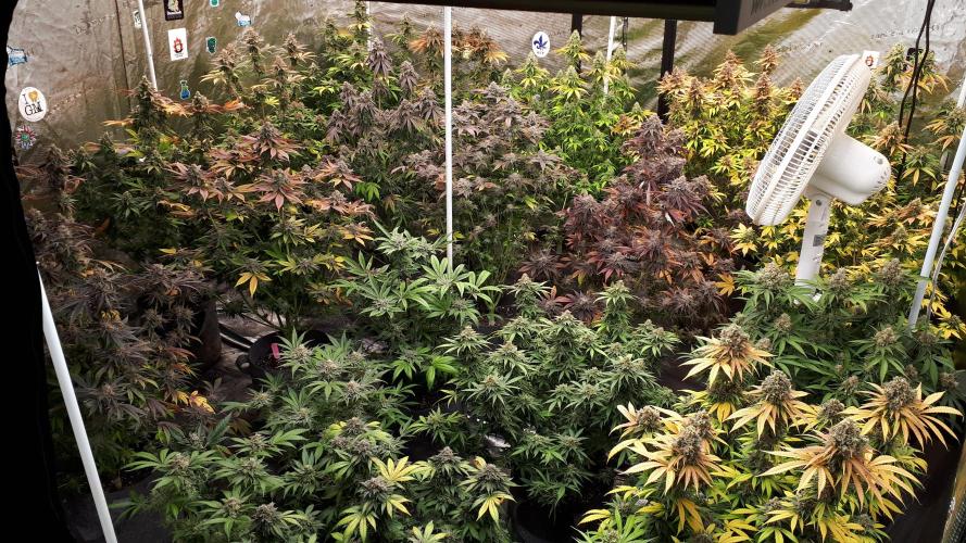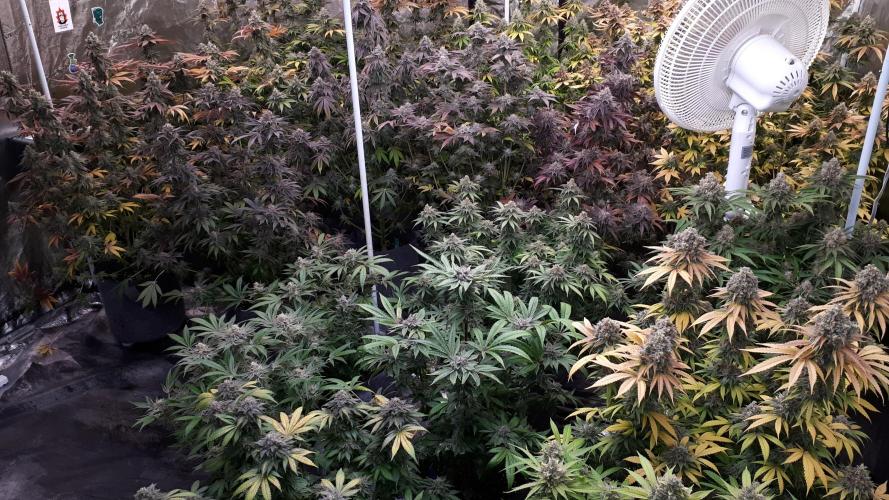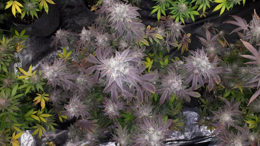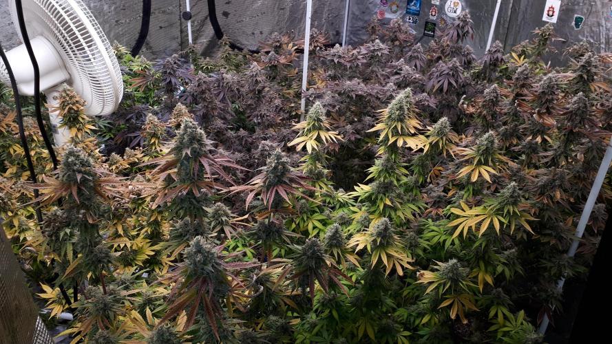 DID A MAJOR DEFOLIATION TO HELP CONTROL THE HUMIDITY AND MORE LIGHT PENETRATION. WHEN YOU REMOVE AS MUCH LEAF AS I DO, YOU GET WAYYY MORE BUDS BUT THEY ARE SMALLER BUT IT HELPS LOWER THE HUMIDITY VERY WELL