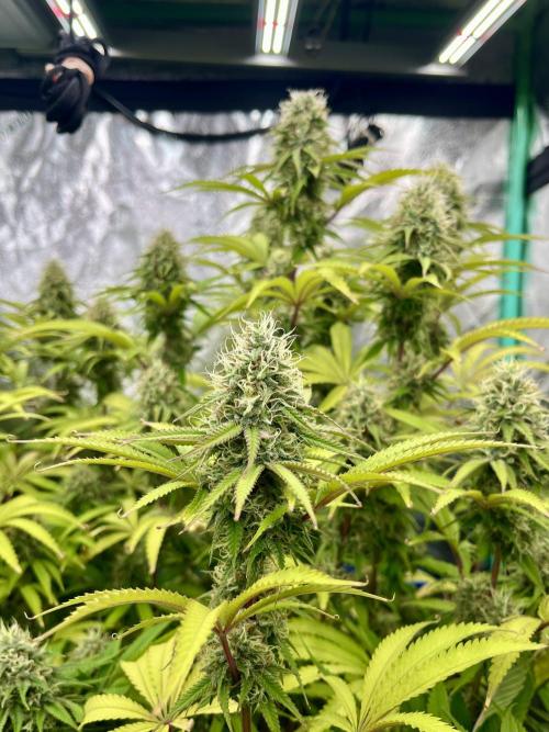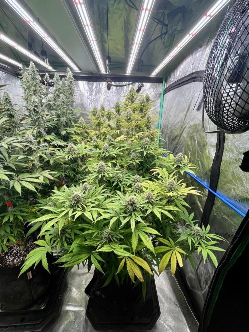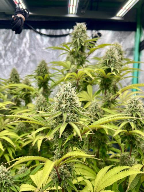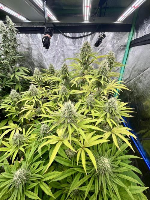 BostonGirlGrows First week of flower in the books. Seeing a few white hairs, but nothing major yet. Expect them to pick up a few more inches this week. Feeding levels have stayed they seem, as plants seem happy-