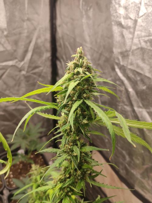 Great strain to grow, quite productive, some nice and long buds. She needs around 9 weeks flowering to totally finish but as mentioned we are rewarded with some bigger buds and some more yield. The smell is great, very tropical with nice sweet aromas!