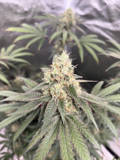 White Runtz from Barney's Farm is a real showstopper. It was the biggest plant in the garden, with strong stems that supported solid, egg-shaped nugs. The buds are practically dripping in frosty trichomes, and the aroma is a mouthwatering mix of sweet and fruity candy. White Runtz delivers a powerful punch of relaxation and euphoria that'll melt away stress and leave you feeling amazing. If you're looking for a top-shelf strain that's both beautiful and potent, White Runtz is a must-try. I recently upgraded to the GrowPro Solutions Under Canopy lights, and wow, what a difference! The colors on my plants are seriously popping – they look so vibrant. Plus, I think it really helped them finish strong. If you're looking to boost your grow, I'd definitely recommend checking these out.