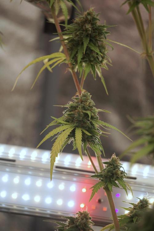 This spectrum shift signals to the plants that the cycle is ending, stimulating final ripening, color development, and resin production. The reds encourage energy transfer in the deeper parts of the canopy, while UV light helps enhance secondary metabolite production — the oils, terpenes, and resins that give Roller Coaster Haze her unique flavor and strength.