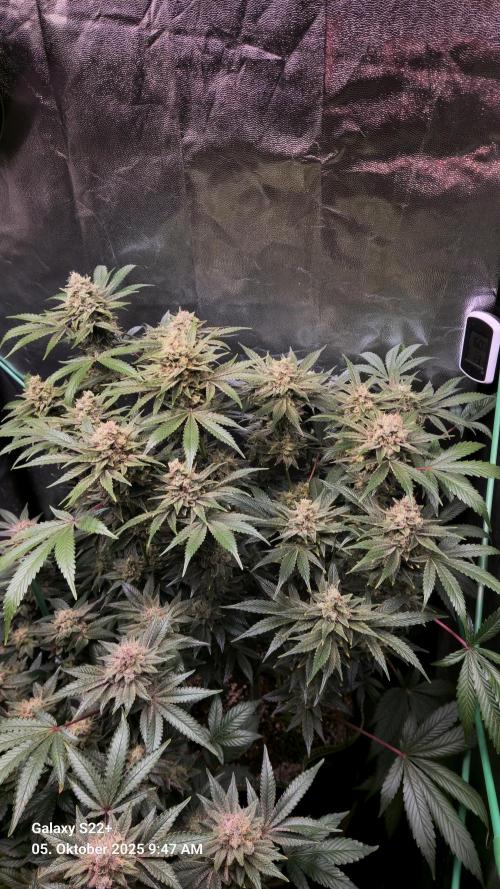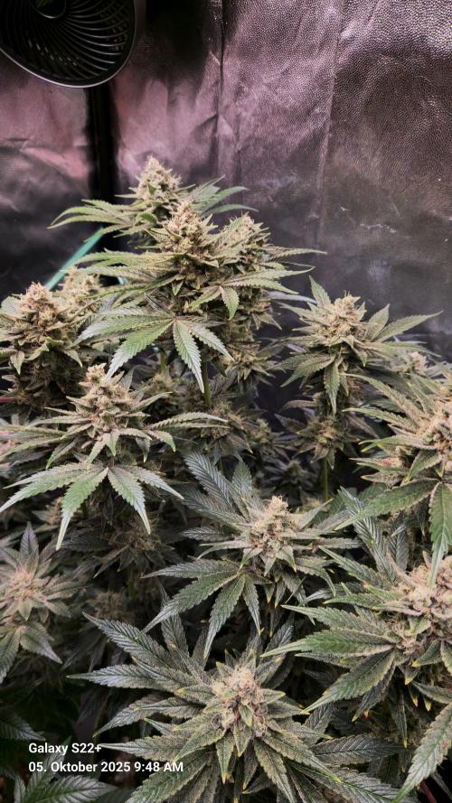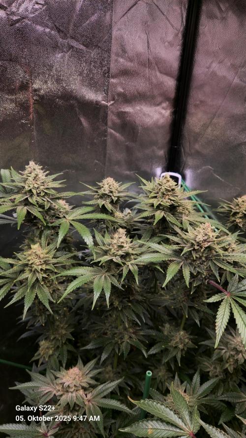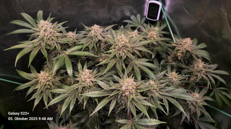 BabaHase Heute war Friseurtermin, hab die unteren Triebe getoppt und allgemein etwas ausgedünnt. Schätze das ich sie nächste Woche ins zelt hole um sie dann in die blüte zu schicken. Ansonsten wächst und gedeiht es.