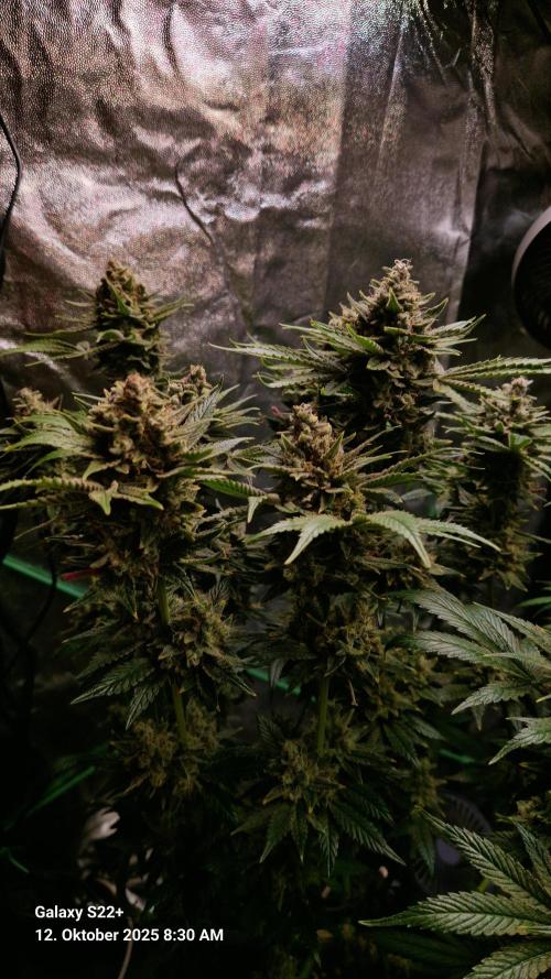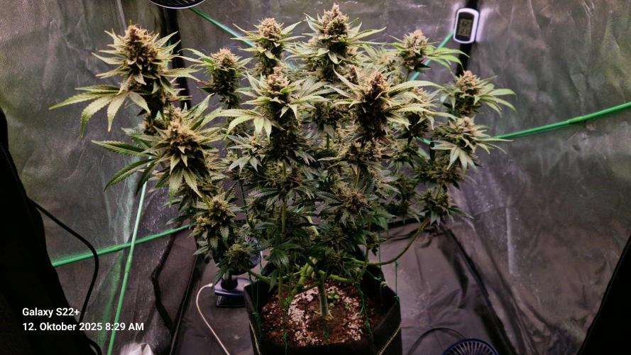 BabaHase Heute war Friseurtermin, hab die unteren Triebe getoppt und allgemein etwas ausgedünnt. Schätze das ich sie nächste Woche ins zelt hole um sie dann in die blüte zu schicken. Ansonsten wächst und gedeiht es.