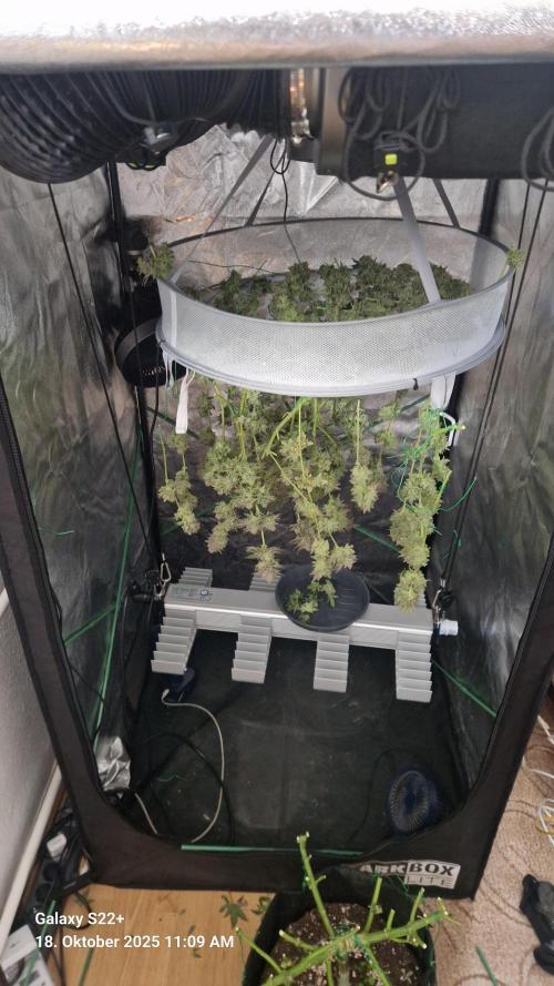 BabaHase Heute war Friseurtermin, hab die unteren Triebe getoppt und allgemein etwas ausgedünnt. Schätze das ich sie nächste Woche ins zelt hole um sie dann in die blüte zu schicken. Ansonsten wächst und gedeiht es.