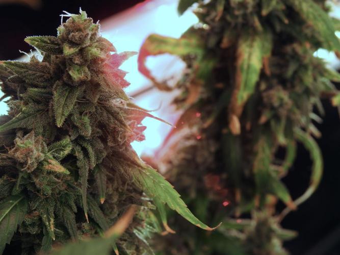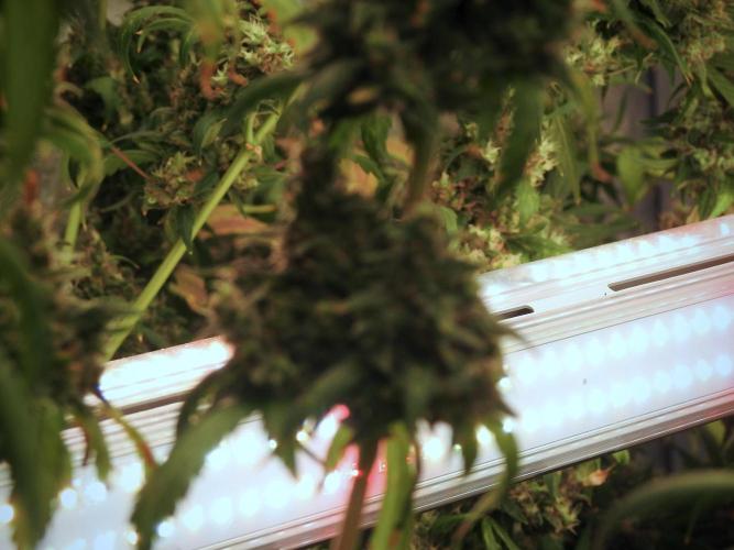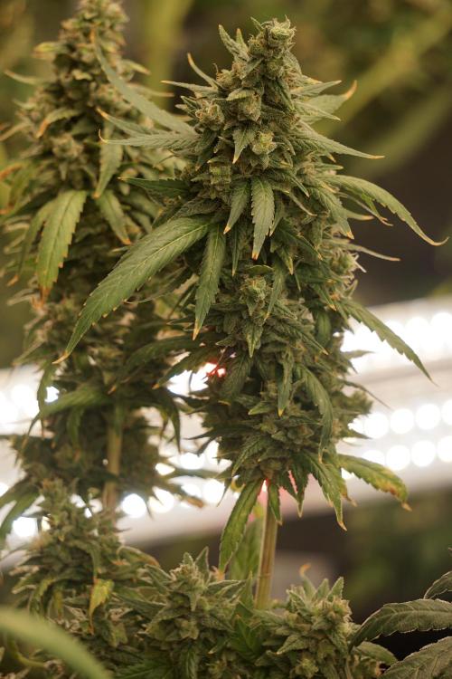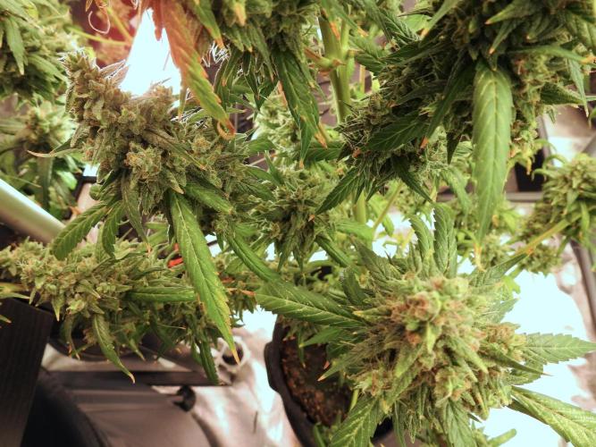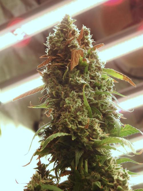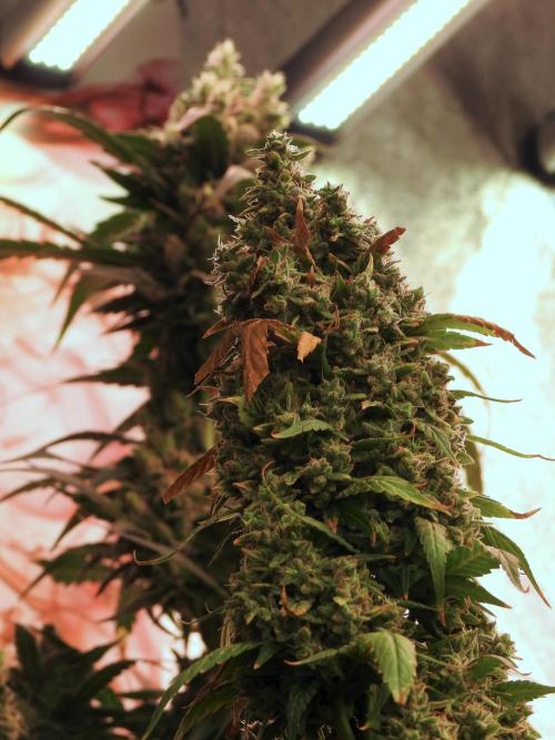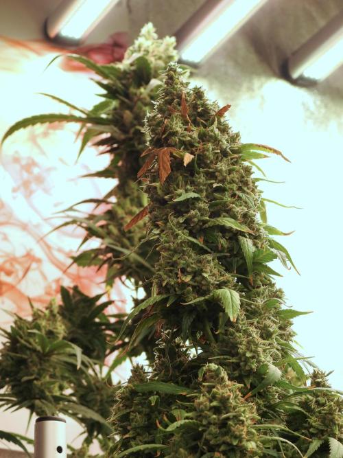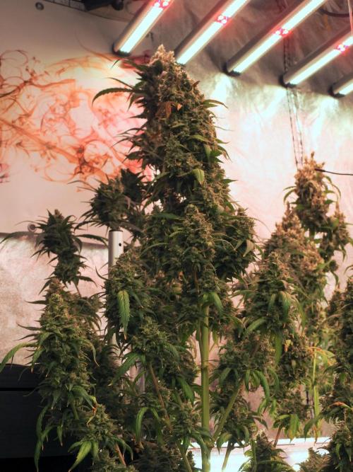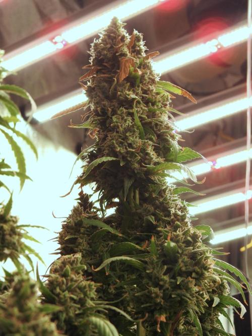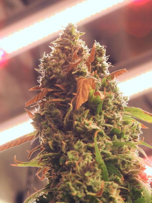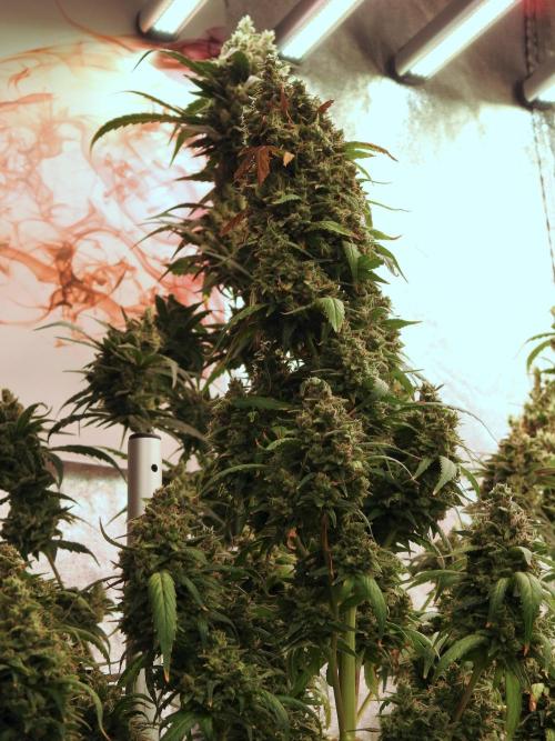 • Weeks 4 and 5 saw sativa-like stretch, white hairs bursting across every cola, and canopy lights filling every corner with photons.