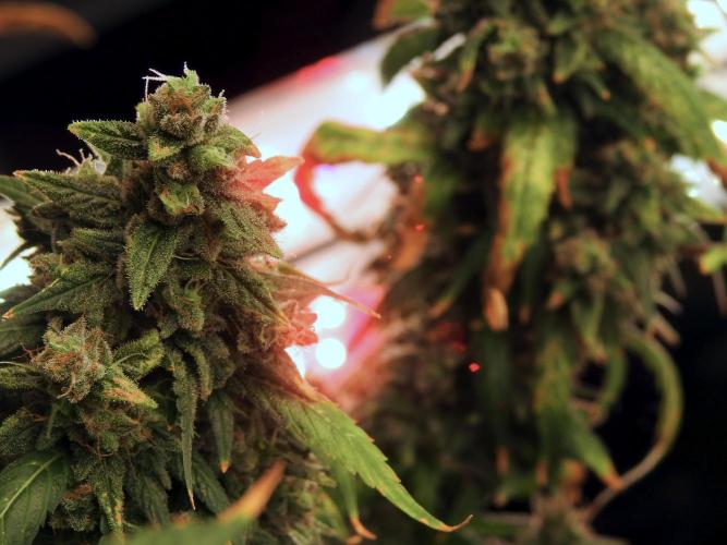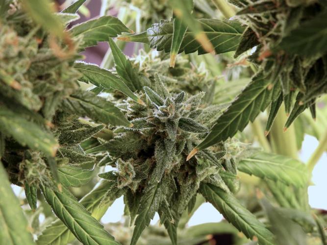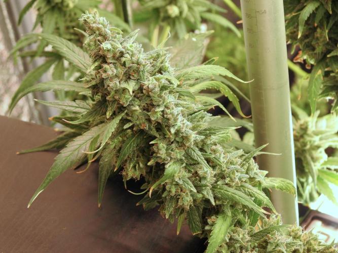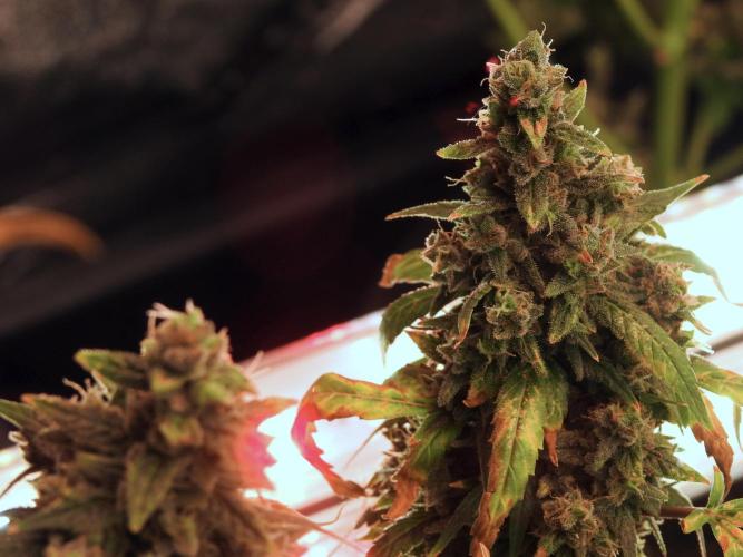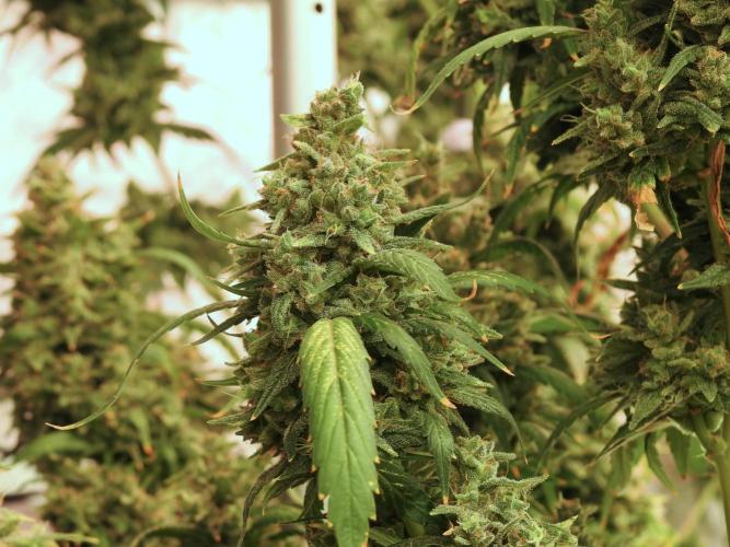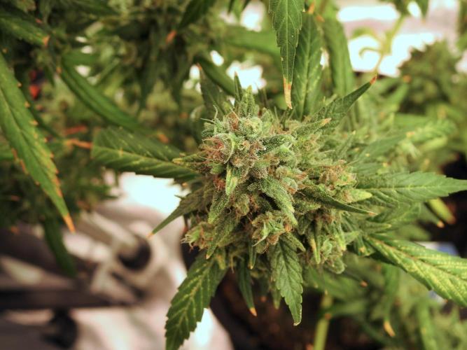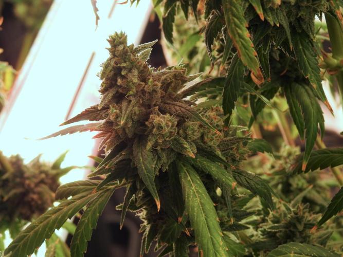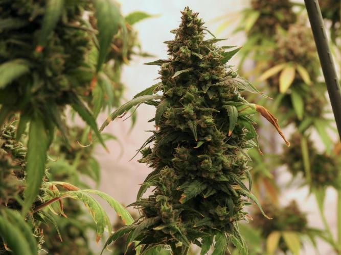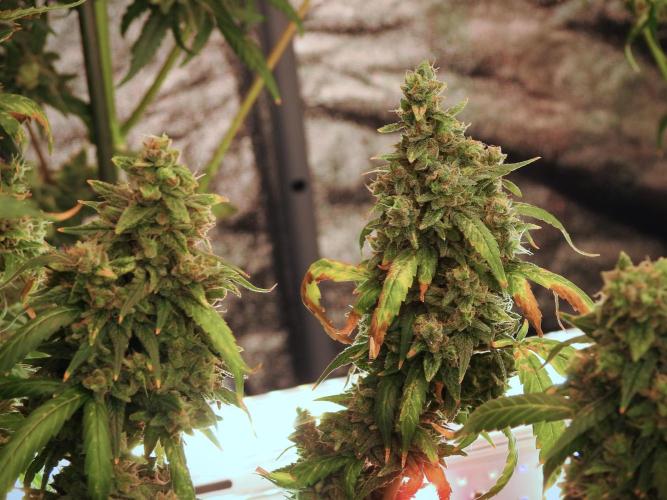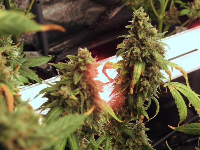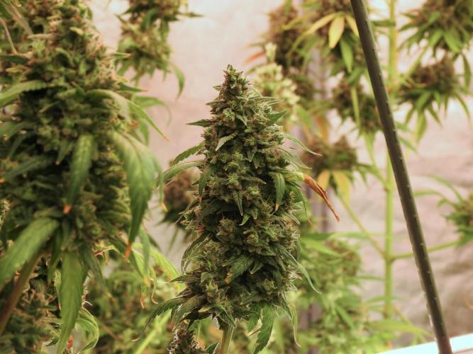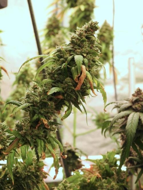 • Weeks 4 and 5 saw sativa-like stretch, white hairs bursting across every cola, and canopy lights filling every corner with photons.
