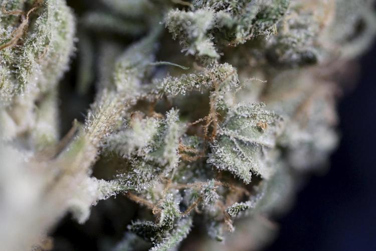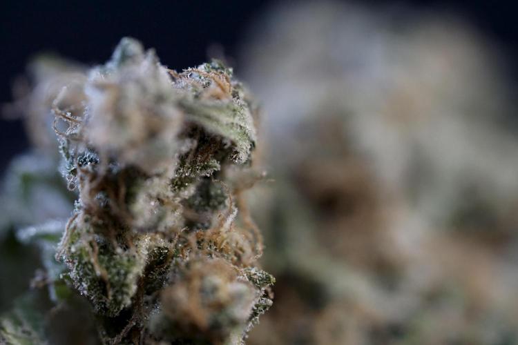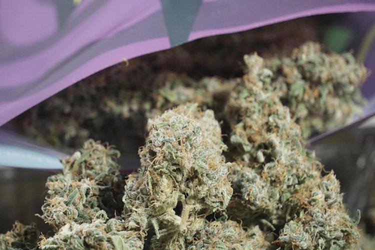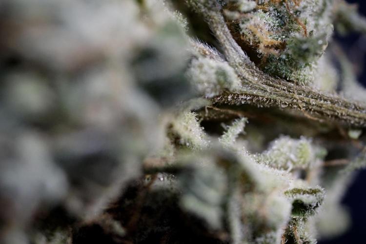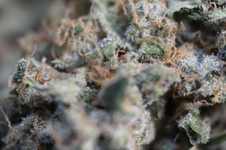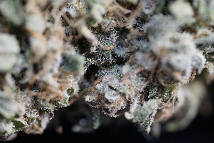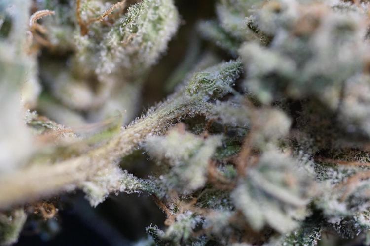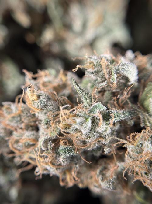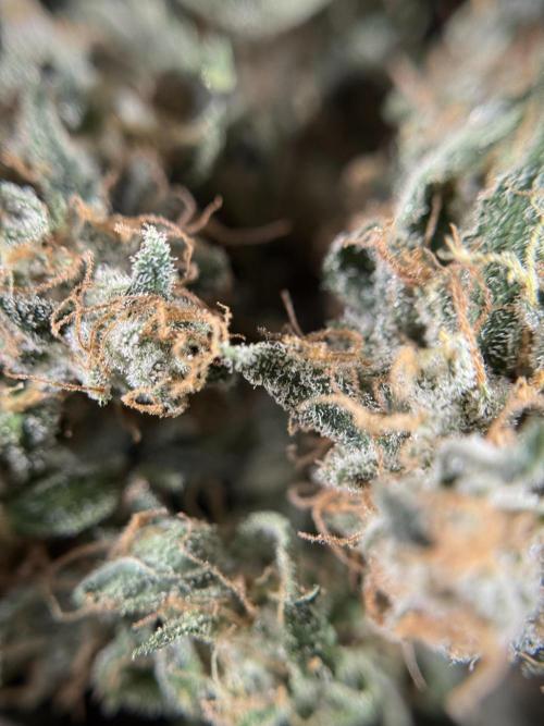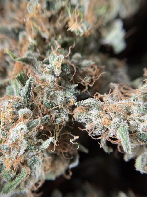 Dense, frosty buds glisten with cloudy trichomes and radiate with soft purple hues. Pure eye candy and sticky to the touch.