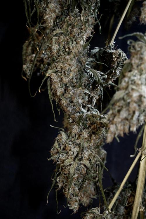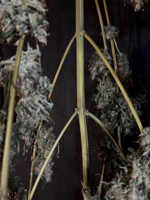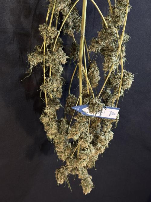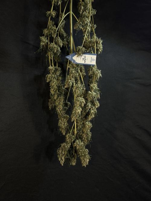 After about two weeks of slow drying at 60°F / 60% RH, the branches began to snap — a sure sign the moisture was just right. Each plant was trimmed by hand, carefully and patiently, letting every calyx, pistil, and trichome tell its own story.