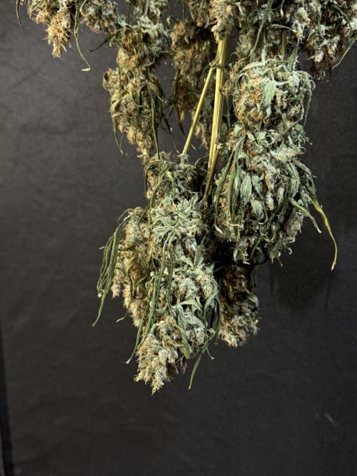 The buds were dense, sticky, and heavily frosted — a trimmer’s delight. Finger hash collected along the way was pure gold, rich in aroma and bursting with terpenes. Each snip of the scissors felt like sculpting something sacred.