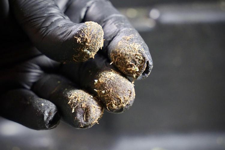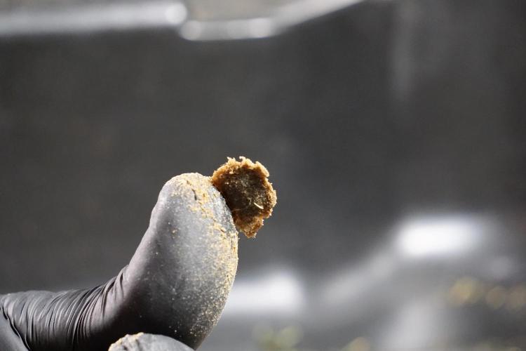 All trim from the grow — not just from Lava Cake — was collected to make a full-spectrum bar using simple, natural heat extraction with hot water in a glass bottle. The result was a potent, sticky, terpene-rich concentrate that perfectly captures the soul of the garden.