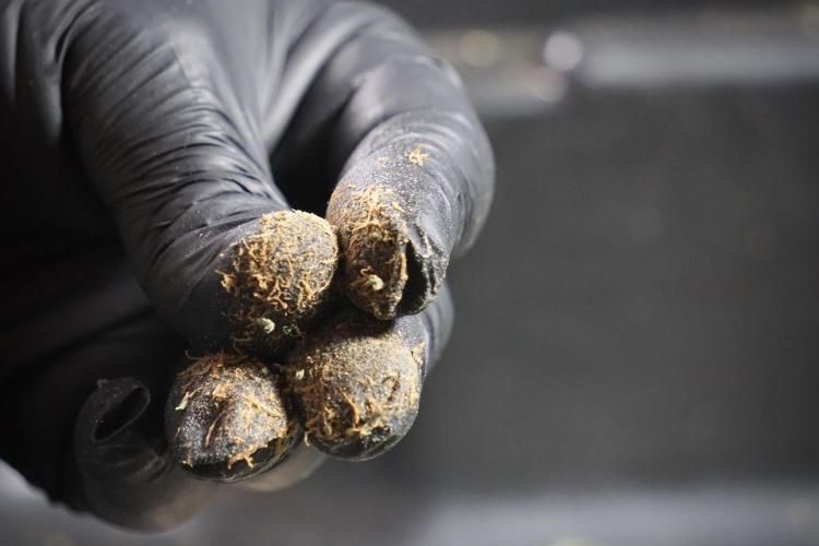After trimming, buds were stored in Grove Bags, which naturally maintain humidity between 55–62%, eliminating the need for daily “burping.” These innovative curing bags use a one-way humidity membrane, preserving terpenes and color while preventing mold.