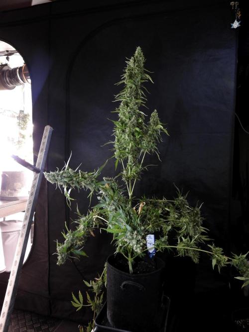 5. Week 7: Buds heavy, frost everywhere, aroma exploding, trichomes mostly milky with hints of amber — the final week before harvest.