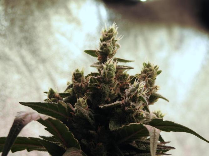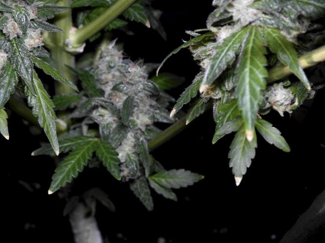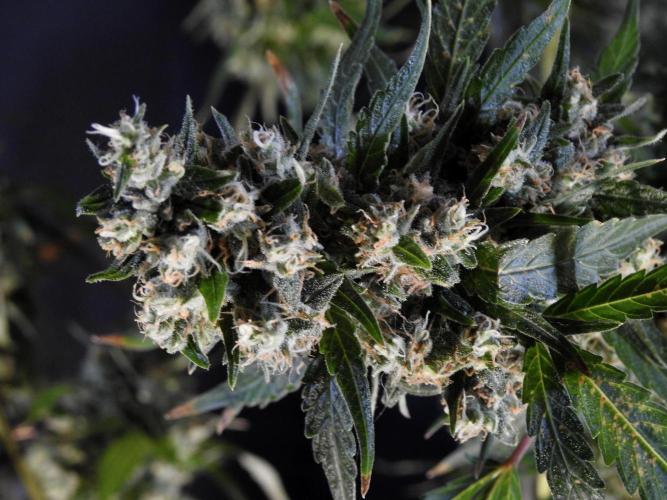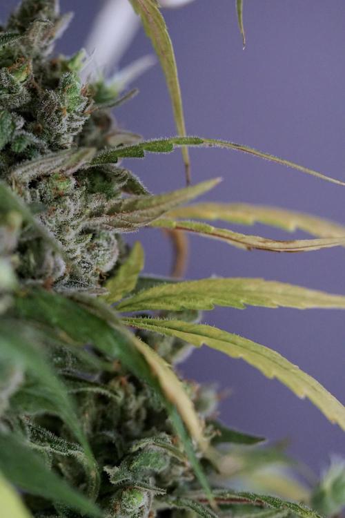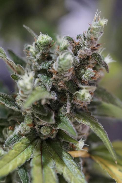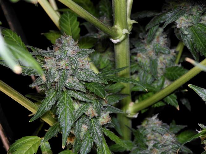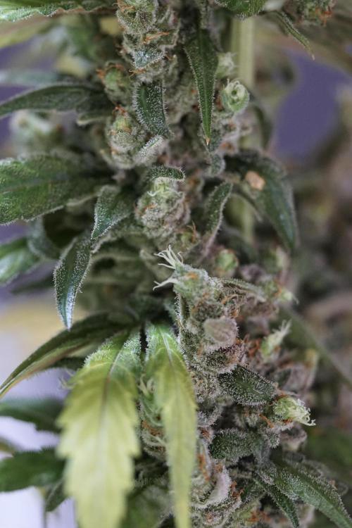 • Amber trichomes: Small percentages on the tips of pistils — this is the first sign of cannabinol conversion, giving the slightly more sedative effect.