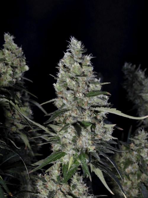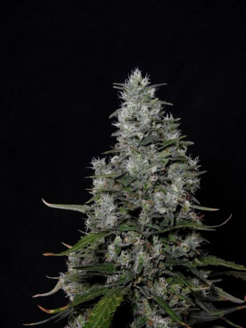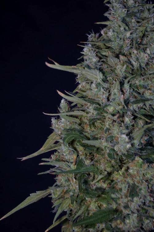 • Pheno #1 – The trailblazer. Her colas are enormous, dense, and sparkling like snowy peaks under the lights. The macro shots reveal a glittering layer of trichomes, covering buds, sugar leaves, and even little fan leaves near the canopy. She’s showing phenomenal resin production, and her pistils are thick and curling.