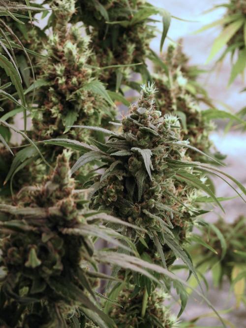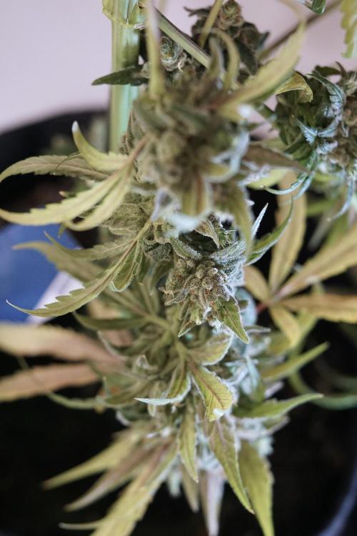 • Clear trichomes: Still present, mainly on the lower bud sites, indicating some time left before peak potency.
