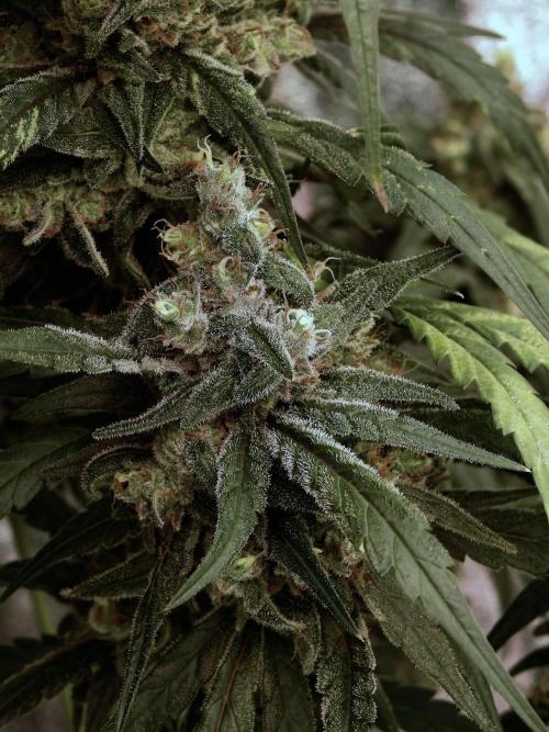 • Pheno #2 – The younger sister, but catching up fast. Her buds are dense and sticky, the frost is appearing more heavily, and every macro shot reveals the same dazzling crystal coverage. She’s slightly behind Pheno #1 in maturity, but don’t be fooled — she’s a true powerhouse in her own right.