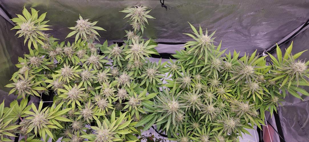I grew 4 of the Papaya Sherbert plants in my last grow, and had a bad experience with them wanting to herm on me. One was a straight up male, and another one grew pollen sacks. The Papaya Sherbert grew some pollen sacks/nanners again in week 5 of flower, which I'm going to blame on the strain at this point. The Orange Sherbert hasn't grown any that I've seen, but I've been keeping a sharp eye out. I went ahead and removed everything below the scrog net, and any small bud on the Papaya Sherbert because that's where the nanners like to grow the most. I'm sure that made an impact on my yield, but at least my yield won't have a ton of seeds.