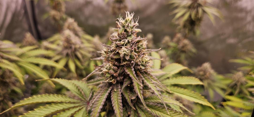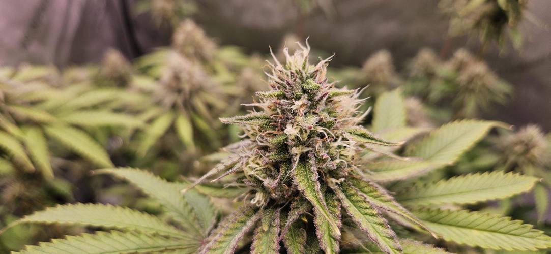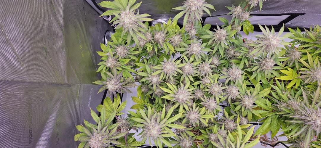 Everything has been going easy this past week. A lot of defoliation and trimming to get some airflow and light in the plants. The buds have made good progress since last week, with the buds getting bigger and trichomes developing all over. There's one bud on the Papaya Sherbert that has far more trichomes than any other bud in the tent.