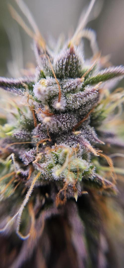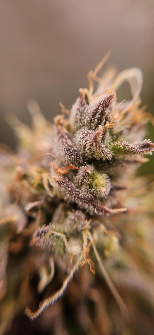 Trichomes are developing nicely. The flower time on Orange Sherbert is 7 weeks, and I think it still needs closer to 2 weeks to form more amber trichomes, but the milky trichomes are looking great. The Papaya Sherbert has a 9-10 week flower time, so hopefully it lines up with the Orange Sherbet. The trichomes on Papaya Sherbert are noticeably behind, but not too far.