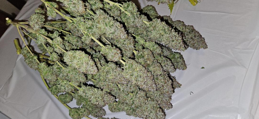 This plant looks like it will be a big yielder. There were lots of bud sites compared to the other strain it was growing next to, but it also had FAR more fan leaves to deal with. So many that I didn't think I could defoliate enough, and I gave up towards the end. The buds grew super dense, and make a very thick "thud" sound when I dropped them on the table.