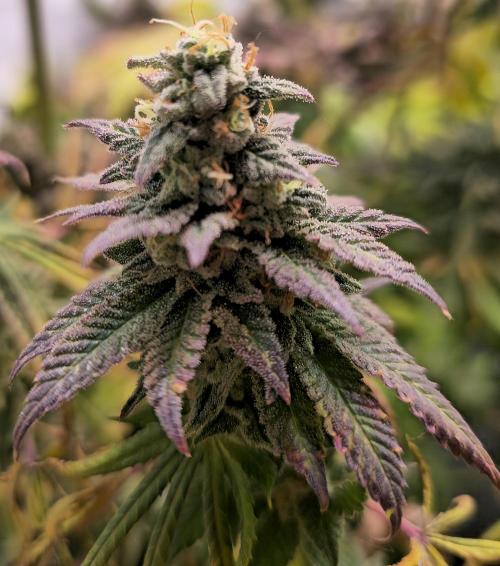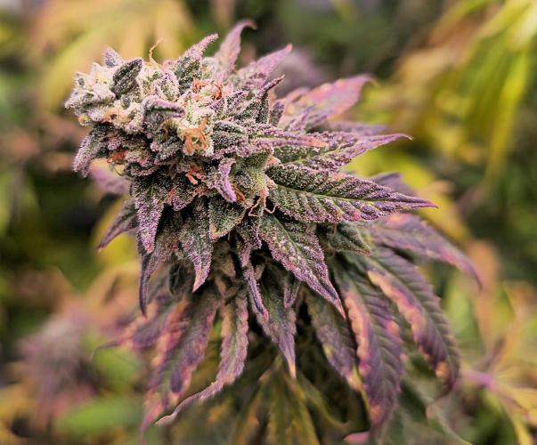 CorinnaFarm Die Knospen entwickeln sich sehr gut und zeigen eine solide Produktion. Sie schwellen stetig an und sind bereits mit einer ordentlichen Schicht Trichome überzogen. Der Geruch ist jetzt schon ziemlich intensiv und macht Lust auf mehr. Auch optisch gibt es einiges zu sehen – die Farben kommen schön zur Geltung. Man merkt, dass der Herbst Einzug gehalten hat.