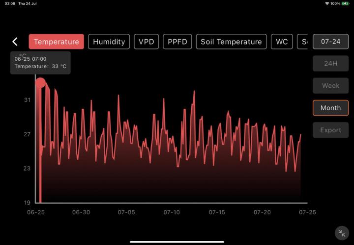 This is near-perfect for mid-flower — warm enough to boost metabolism, yet steady enough to maintain trichome production.