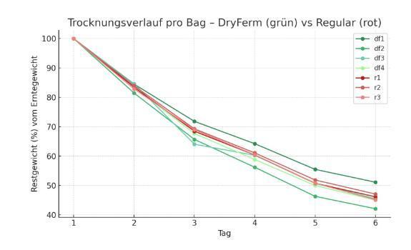 About drying in dry ferm/dry age and regular drying: the material in the bags took a few days longer to dry which is said to be good (regular dry was 7 days, bags was 9 or 10). initially I think the buds from bags look better but now in curing I can't really tell a difference, not visually and not in the nose. Let's see how everything evolves over time but honestly I am not expecting it to differ a lot from regular drying.
