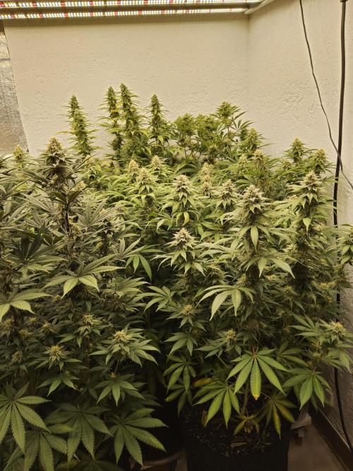They are going to need a bit more food this next week and I'll probably do some defoliation trimming off any lower branches that won't get enough light intensity to produce quality bud. I don't like popcorn buds, IMO they are not worth it