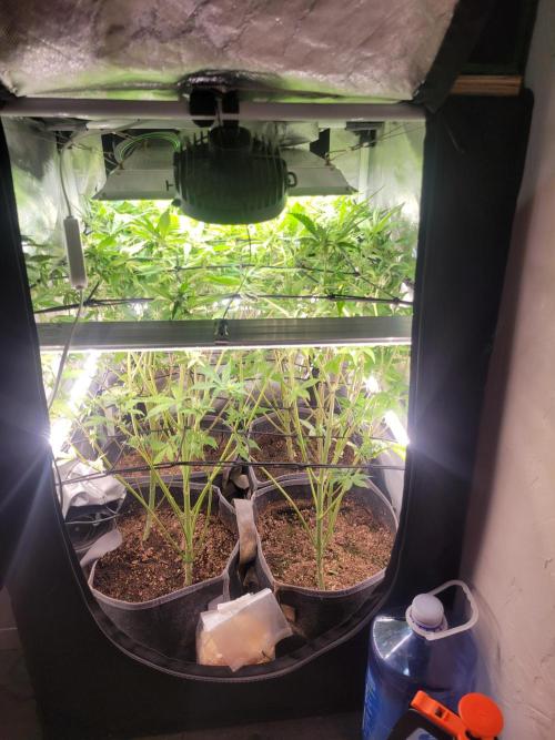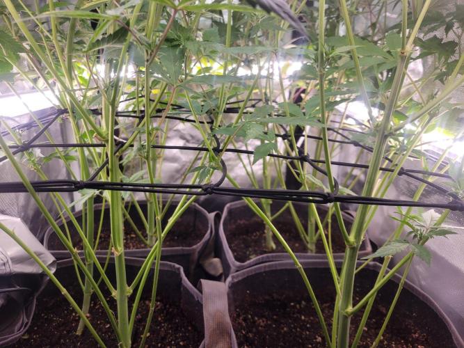 HelicopterHugs I decided to put the trellis in today they should reach it by next week. 1st is for support and training 2nd net will be to stop the plants from touching the light and hst.