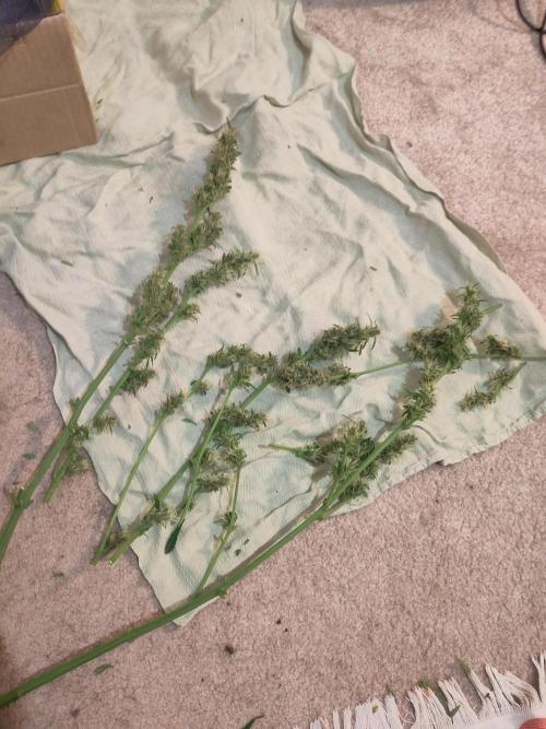 potatolord111 She could’ve actually stayed another week, but over the past week I kept finding new spots of powdery mildew every day, so I decided to harvest her. The result looks pretty good at first glance. The smell is already impressive – a lemony creaminess. However, I can already see that the buds are going to be quite airy. Because of the mildew, I decided to do a wet trim, so that as few spores as possible remain during drying. I’ll dry half of it in my room, and the other half will go into Dry Ferm Bags in the fridge. In the meat compartment there, I’ve got a humidity of 55%. Hopefully that’ll work out. I washed them with baking soda and lemon juice I don't know if the living soil was the best choice. I mean it growed and look nutrious all time but the buds could be way fatter... So... Maybe I will try another wedding cake with normal nutriouns. Stay tuned – I’m really curious about the outcome.