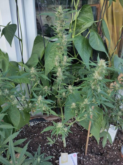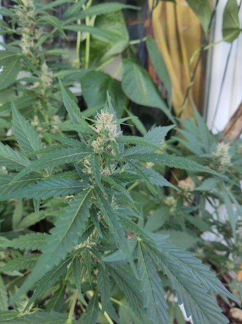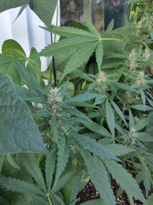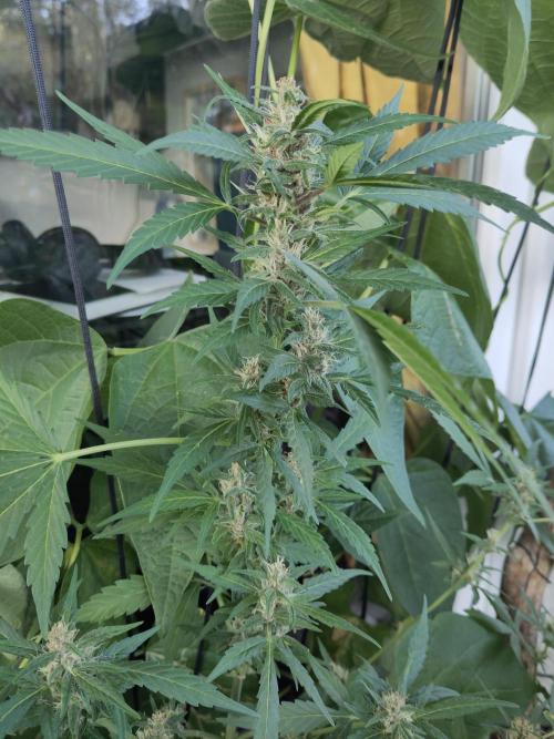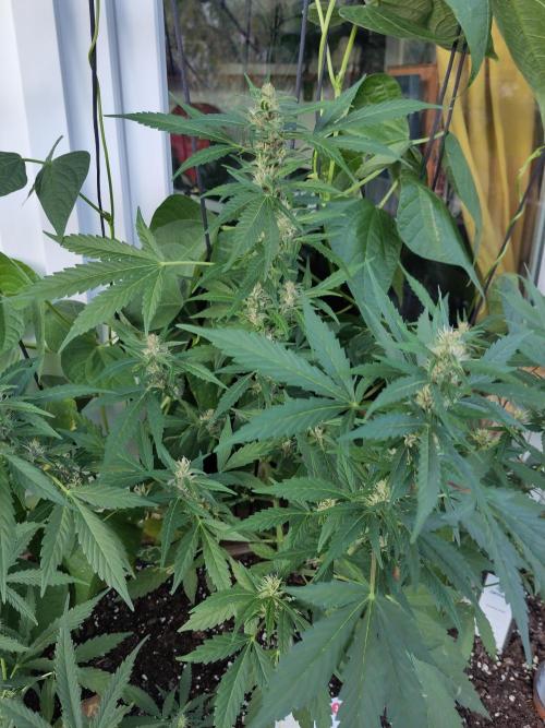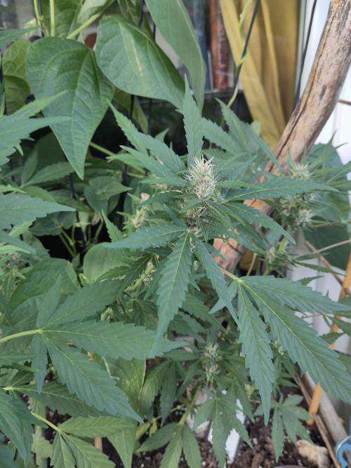 potatolord111 The weather was mixed again. They got a little bit sun each day but it was rainy again. She's blooming now. Looking good, espacilly for the amount of sun she got. I cut some of the big leaves on the sun side to get more light to the side branches