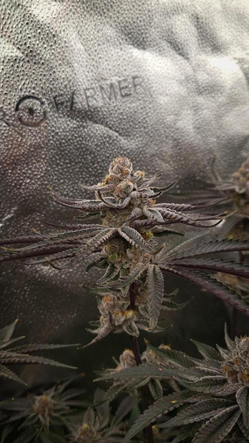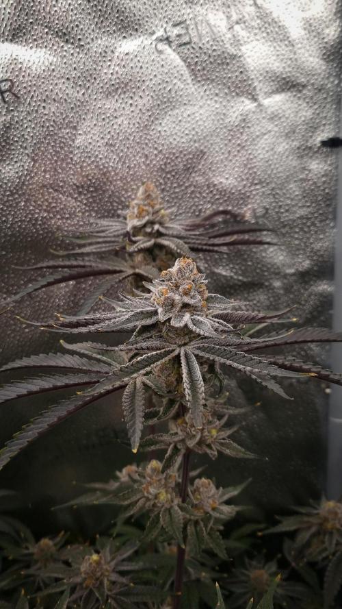 HippyHemulen She is starting to get nice frosty with some purple colors. Buds are pretty thick already and smell is forming stronger.