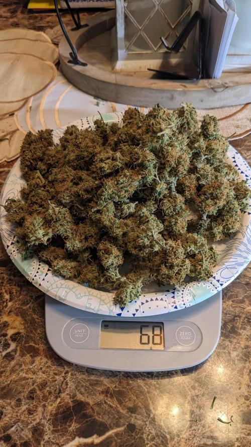 Nice plant, very bushy and frosty. Didn't run into any concerning and found it was a very easy feeder. She's going to hang out for a week or so then she'll get trimmed and jarred with a burp lid and a 62% humidity pack. Ended up with 68 grams