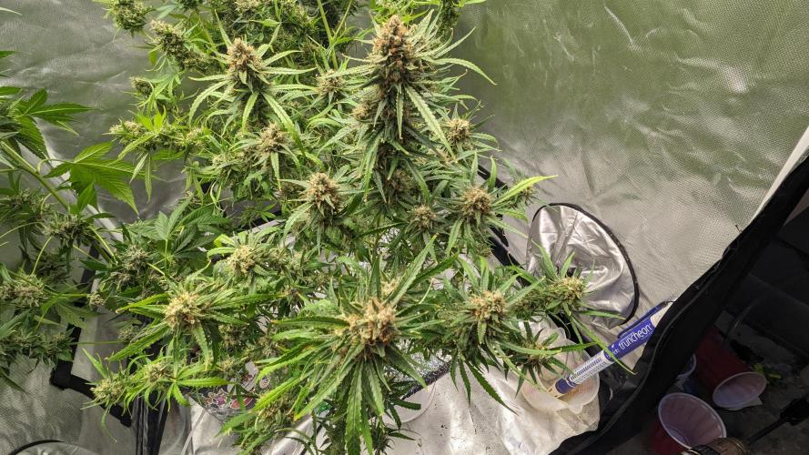 GroloCup Absolutely cruising along. Not a worry in the world doing 100 in the fast lane. Nutes and light are fueling her and she's an absolute blast to watch as she passes through the early flower and into mid flower. Shes starting to show some trichome development, so a mid August frost may be upon us!