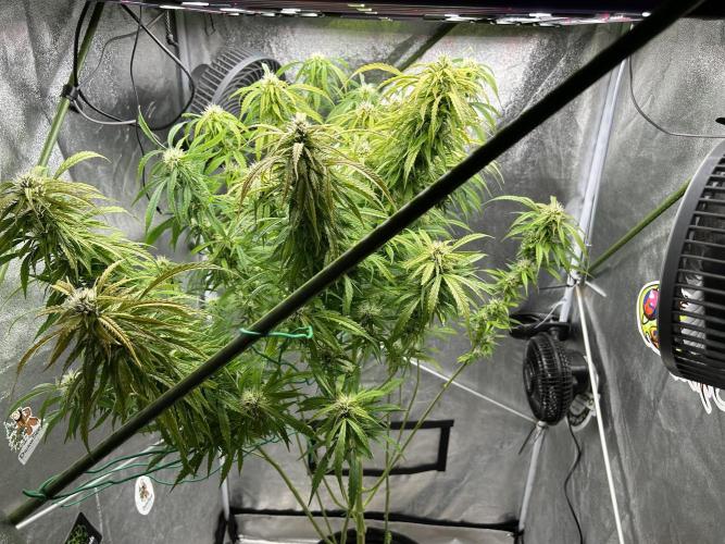 Amboss Take only the Headleafs Off… Also little bit supercropping… And as spray in the Water alg a mic and bitter Salt …few days alg a mic and the other bitter Salt