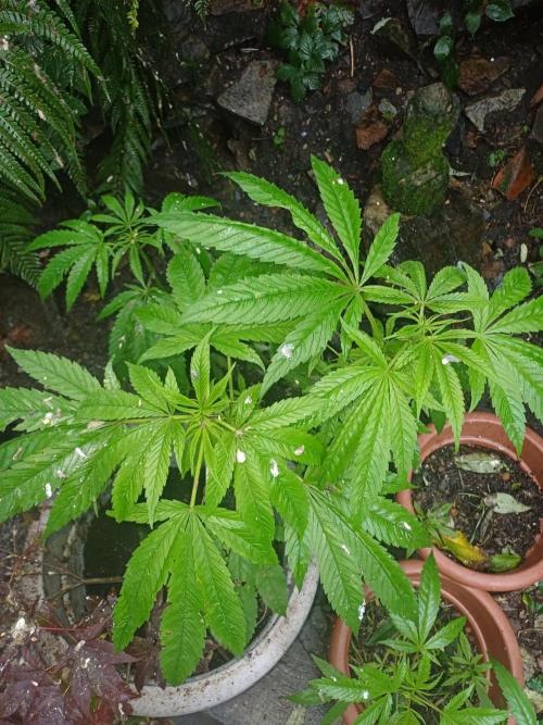 Almost 2 weeks since I updated diary. Considering the lack of proper maintenance and feeding these plants have continued to thrive enough to dominate the small part of the garden I have them in. No signs of flower but as they were bagseed they could be male. I wouldn't know the difference to be honest. The temps here have dropped considerably and any hope of a warm September or early November are dashed. Very low cloud and torrential rain has pushed outside humidity into the high 80's with no signs of dropping. I will let them play out as they still remain hidden from view and there is no smell. I am impressed by their resilience to the elements and lack of maintenance as opposed to an indoor grow which, at times in my experience, must be micro managed. Cant beat mother nature. I am glad I did this experiment and I am curious to how they will progress.