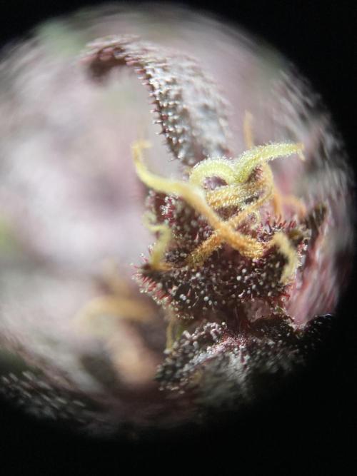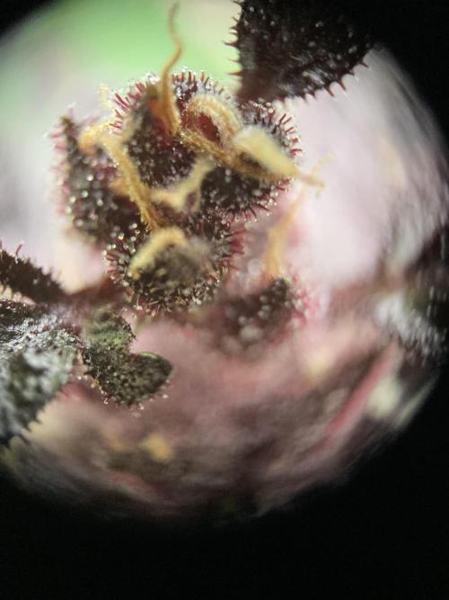 Checked her trichomes today: mostly clear. She is strong 💪 Maybe I can harvest her in two weeks?