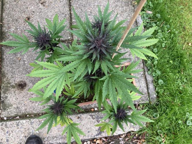 Purplematic CBD is starting to show some colours 💜💚 She enjoys her new place in the garden. I’ve switched to Alga Bloom now she is in flowering.