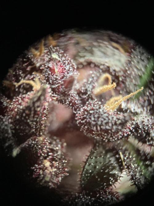 Checked her trichomes today: mostly clear. She is strong 💪 Maybe I can harvest her in two weeks?