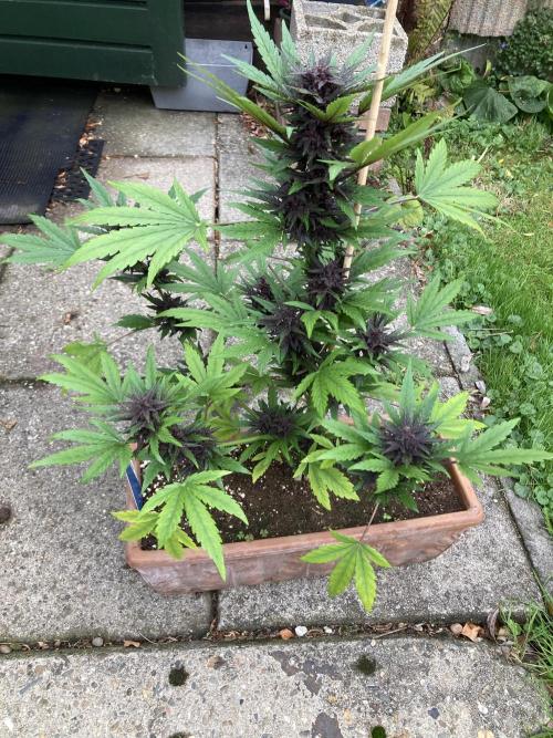 Purplematic CBD is starting to show some colours 💜💚 She enjoys her new place in the garden. I’ve switched to Alga Bloom now she is in flowering.