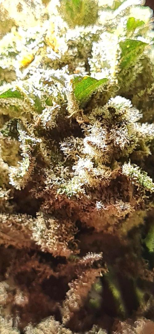 Flower development is still going well and ive definitely noticed maturation of her buds speeding up over the past week, trichomes are half clear half cloudy and her smell has increased again slightly.