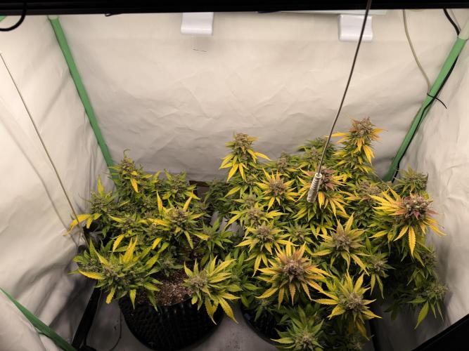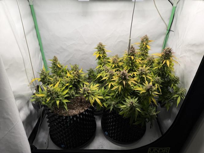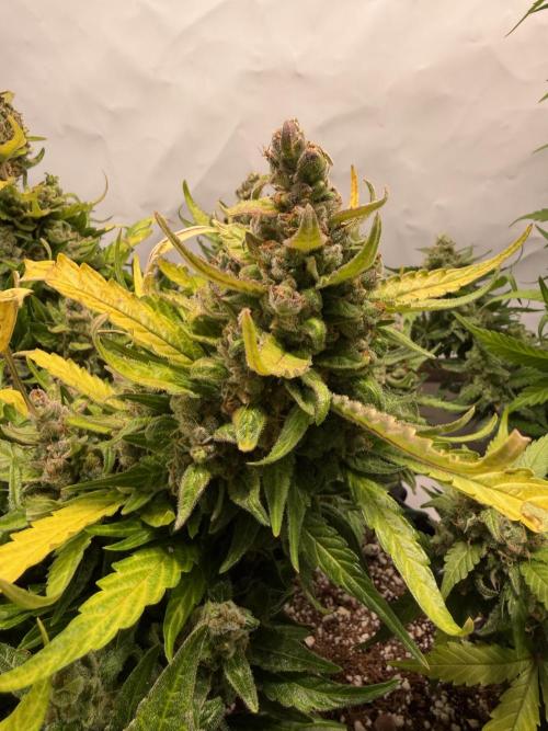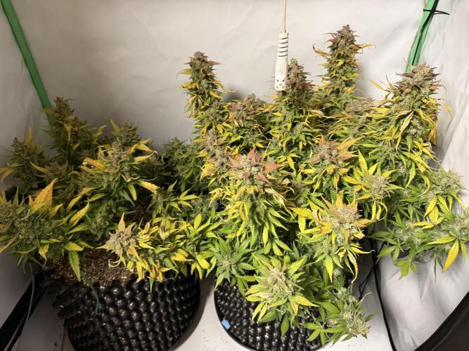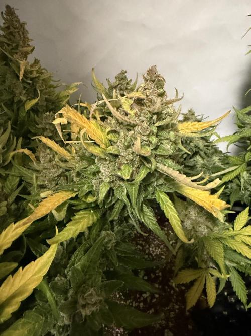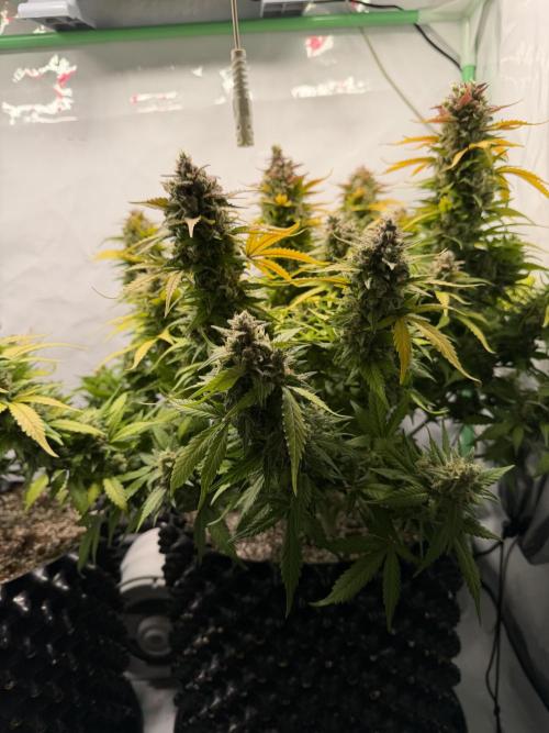 Regenwurm https://shop.pro-emit.de/regenwurmgd Leute.....Schaut euch bei Pro-Emit auf der Seite um und kauft dort eure Lampen etc.....(Natürlich über diesen Link, da es hier natürlich einen Rabatt für euch gibt) Ich bin seit Jahren ein sehr zufriedener Kunde und du bekommst heftige Qualität Made in Germany…. An dieser Stelle ein fettes Dank an Pro-Emit für euren Support Beim nächsten Grow kommt die neue Lampe 😁😁😁🎉🎉🎉 Noch 1 mal mit den angegebenen Mengen gedüngt und dann diese Woche gespült bis der Drain Bei einem EC von 0,8 war. Die Klima Bedingungen sind sehr gut! Die Pflanze wo ich nichts gemacht habe außer zu entlauben funktioniert super und die Pflanze die ich mit LST trainiere schwächelte im Wachstum und sieht nicht so gut aus wie die andere. Nach der PK 13/14 Woche haben wir nun die zweite Reife Woche hinter uns gebracht! Nicht mehr lange dann sind die ladies auch schon wieder fertig! Ca 1 Woche Learning bei diesem grow: es geht auch wunderbar ohne Trainingsmethoden sondern nur mit entlauben…. Die Blüten werden gut fett und gehen jetzt ordentlich in die breite….. da wird noch einiges passieren! Tage der Keimungsphase = 4 Tage Tage in Wachstum = 25 Tage Tage in der Blüte = 45Tage Gesamt =74 Tage Wachstum h = 0 cm 1 mal in dieser Woche mit Purolyt Mischung 1:25 besprüht Lichtstärke: 85 % PPFD: ca. 800 umol Lichtabstand: 35 cm Std Tag/Nacht: 18,5/5,5 Temperatur Tag: ca. 25 Grad RLF Tag: 50% Temperatur Nacht: 20 Grad RLF Nacht: ca. 50 % VPD Wert: ca. 1,25 PH Wert Wasser/Düngelösung: 5,8 EC Wert: 1,5/ 0,3 beim Spülen Ventilator Oszillation: Stufe 1 Befeuchter: an Entfeuchter: aus Zusätzlicher Entfeuchter: 0 Stk. außerhalb vom Zelt im Raum Bewässerung: ständiges minimales bewässern dicht am Stiel Purolyt Besprühung: 1 mal Controlling: Grow Control Dünger: Canna Coco Licht: Pro Emit Vollspektrum Abluft: EC Carbon Active 750 m3