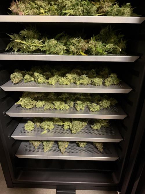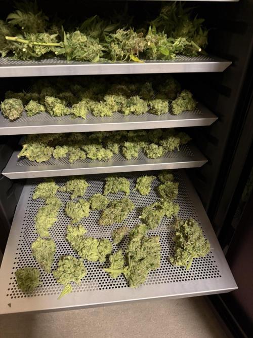 Regenwurm https://shop.pro-emit.de/regenwurmgd Leute.....Schaut euch bei Pro-Emit auf der Seite um und kauft dort eure Lampen etc.....(Natürlich über diesen Link, da es hier natürlich einen Rabatt für euch gibt) Ich bin seit Jahren ein sehr zufriedener Kunde und du bekommst heftige Qualität Made in Germany…. An dieser Stelle ein fettes Dank an Pro-Emit für euren Support Beim nächsten Grow kommt die neue Lampe 😁😁😁🎉🎉🎉 diese Woche gespült bis der Drain bei einem EC von 0,8 war. Die Klima Bedingungen sind sehr gut! Die Pflanze wo ich nichts gemacht habe außer zu entlauben funktioniert super und die Pflanze die ich mit LST trainiere schwächelte im Wachstum und sieht nicht so gut aus wie die andere. Nach der PK 13/14 Woche haben wir nun die dritte Reife Woche hinter uns gebracht! Heute gehen sie für 3 Tage ins dunkle und dann ist harvest day Learning bei diesem grow: es geht auch wunderbar ohne Trainingsmethoden sondern nur mit entlauben…. Die Blüten sind gut dicht und kompakt…. Tage der Keimungsphase = 4 Tage Tage in Wachstum = 25 Tage Tage in der Blüte = 52Tage Gesamt =81 Tage Wachstum h = 0 cm 2 mal in dieser Woche mit Purolyt Mischung 1:25 besprüht Lichtstärke: 75 % PPFD: ca. 700 umol Lichtabstand: 35 cm Std Tag/Nacht: 18,5/5,5 Temperatur Tag: ca. 25 Grad RLF Tag: 40-50% Temperatur Nacht: 21 Grad RLF Nacht: ca. 45 % VPD Wert: ca. 1,25 PH Wert Wasser/Düngelösung: 7,3 EC Wert: 0,3 beim Spülen Ventilator Oszillation: Stufe 1 Befeuchter: an Entfeuchter: aus Zusätzlicher Entfeuchter: 0 Stk. außerhalb vom Zelt im Raum Bewässerung: ständiges minimales bewässern dicht am Stiel Purolyt Besprühung: 1 mal Controlling: Grow Control Dünger: Canna Coco Licht: Pro Emit Vollspektrum Abluft: EC Carbon Active 750 m3