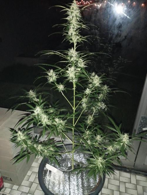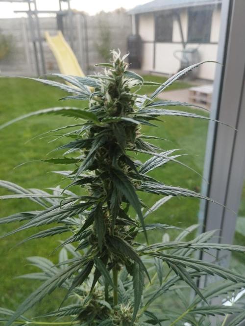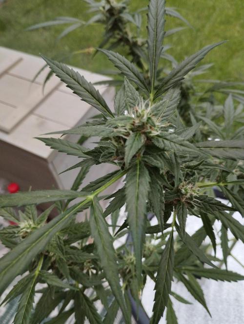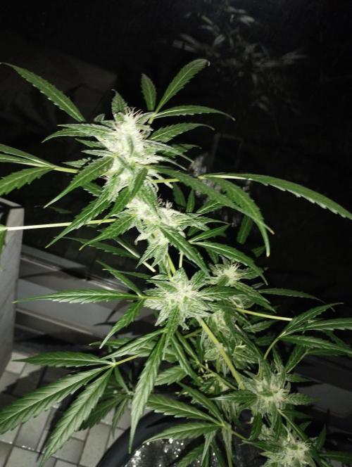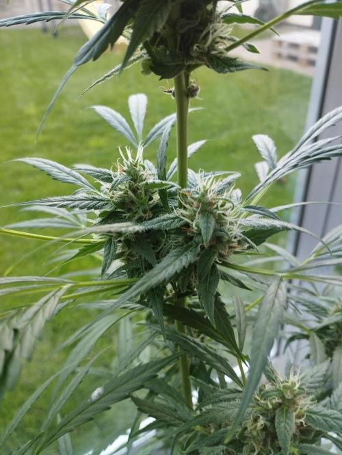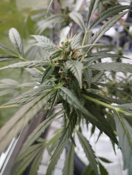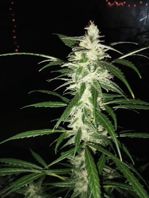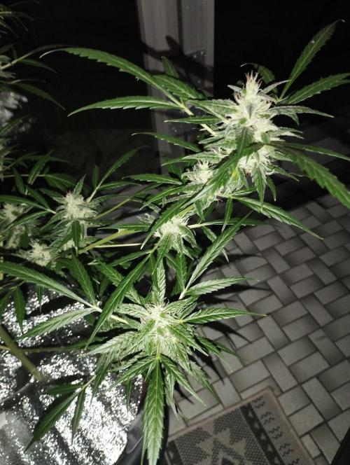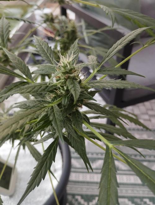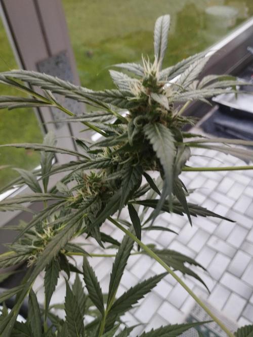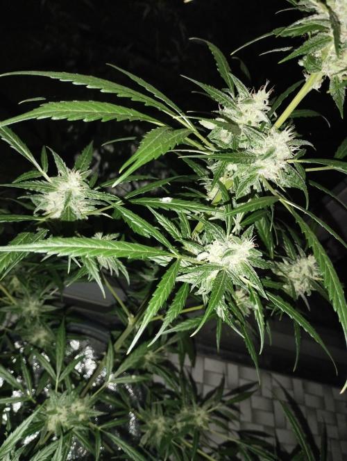 The fact that it's gotten a little colder doesn't seem to bother her for now. She's in full bloom and packing up buds, which are already a fair size. I've got her on the plagron bloom and green sensation nutrients for now.