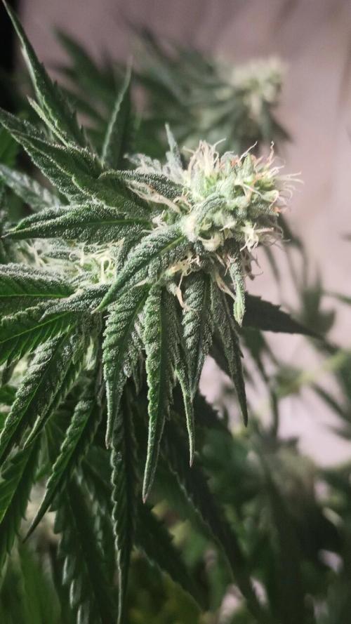 KurtThePlantGuru These plants are getting so frosty, and so smelly! The Terps are the most unique blend of Terps I have ever smelled, and I cannot say I expected it! Terps reek into the whole room, of strong Cherry Berry Wine, a deep ripe/nearly rotten cherry funk, with a background of that Superboof Orange Rinds, and Blue Moon IPA/Hop Terps, with a very slight hints of gassiness but that might be just the orange funk from the Superboof. Some buds are light and airy, not quite like a super silver haze or a NYC Piff kinda light and airy. It's a nice middle ground and looks as if it's gonna wash well! Some buds specifically the ones getting the strongest light, are a bit more dense. Beautiful strcuture,.spear shaped nugs with wacky formations, almost cactus like ! Haven't seen any foxtailing but almost seems as if it might as some point! Color is bright green! Which it's still a bit too early to tell if it's gonna turn purple but according to pictures that the breeder has posted of 2 diff phenos , one being completely purple and the other with a greyish green with spots of purple color! So I look forward to seeing how it looks! This Pheno has a completely different structure then the 2 Homegrown Genetics posted! Super stable for having such different genetic variation !