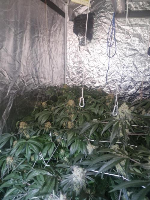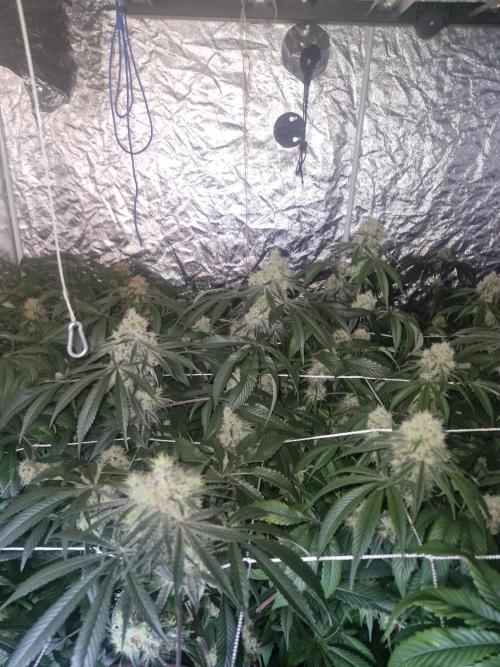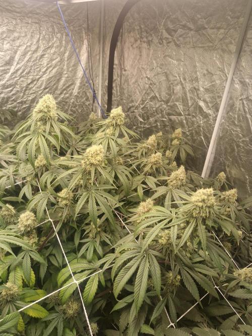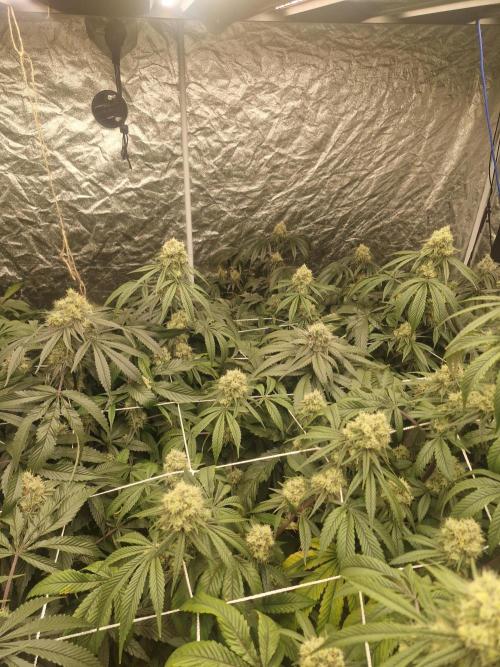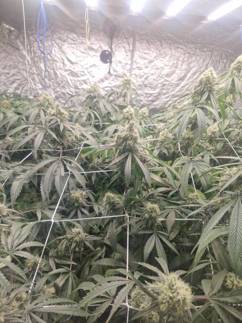 420strainhunter Hi all this tent is now starting to grow nice now I had to flush them for 5 days due to leaves dying on the tips they are now flowering nicely its day 1 of week 4 but I'm going to do 1 extra week due to the so start and the problems with the leaves this tent should be absolutely rammed at the end any advice is welcome thanks for looking