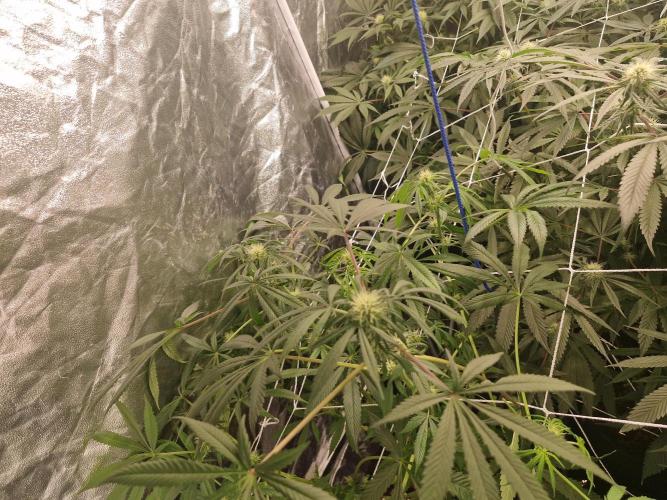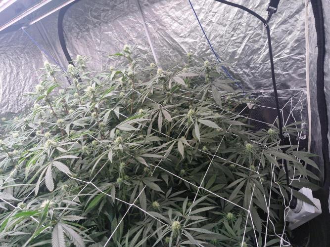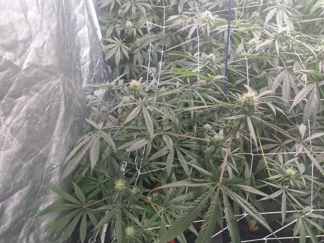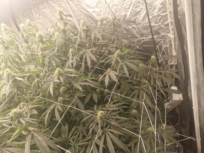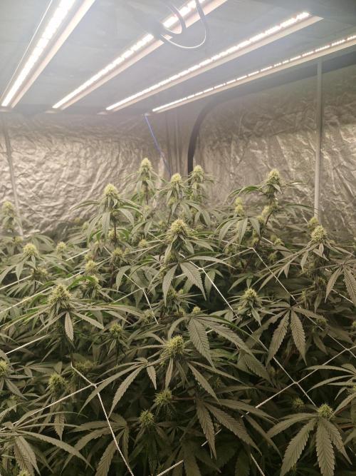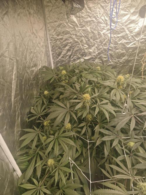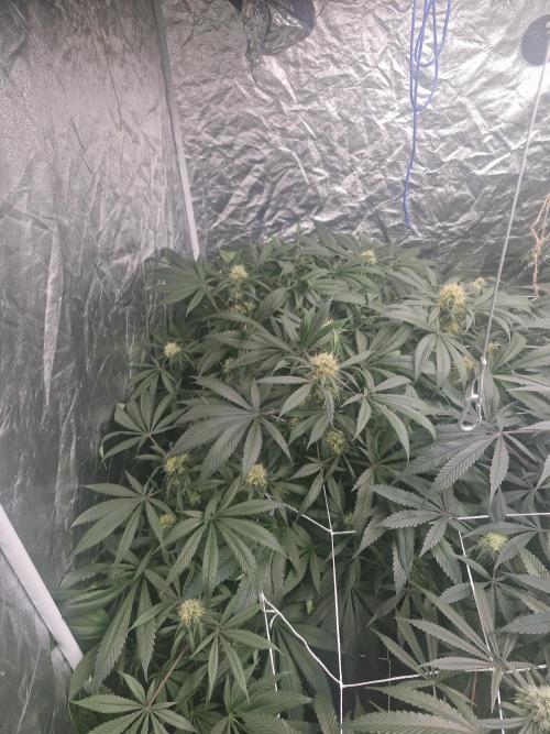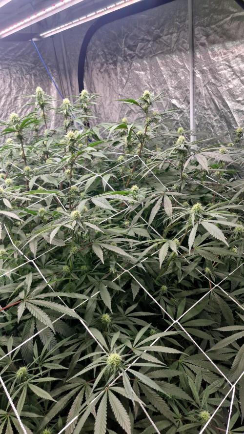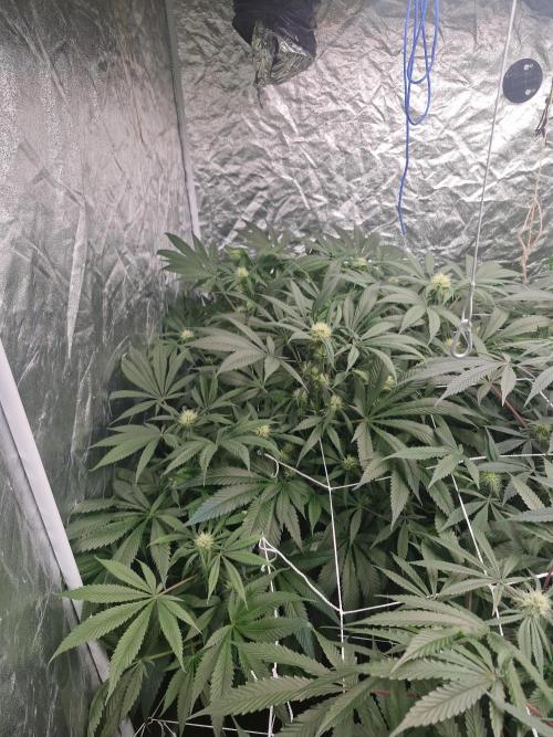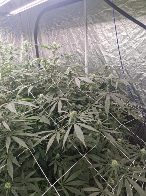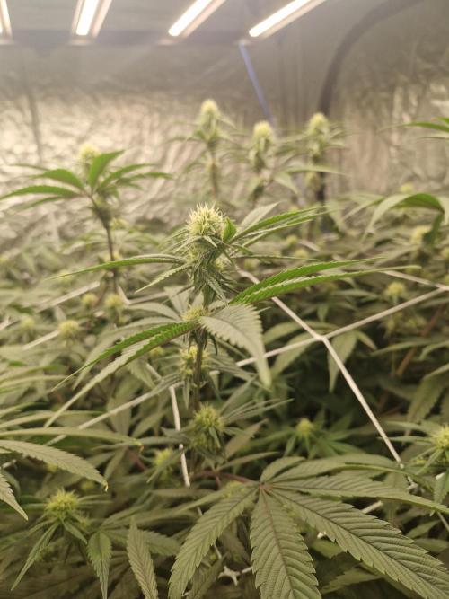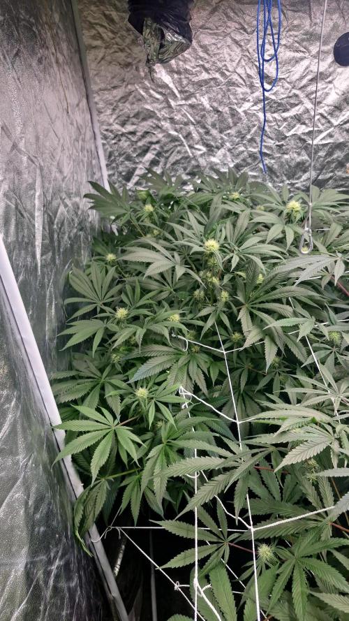 420strainhunter Hi all this tent is now starting to grow nice now I had to flush them for 5 days due to leaves dying on the tips they are now flowering nicely its day 1 of week 4 but I'm going to do 1 extra week due to the so start and the problems with the leaves this tent should be absolutely rammed at the end any advice is welcome thanks for looking