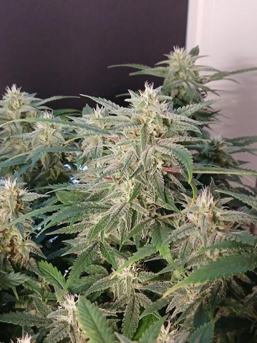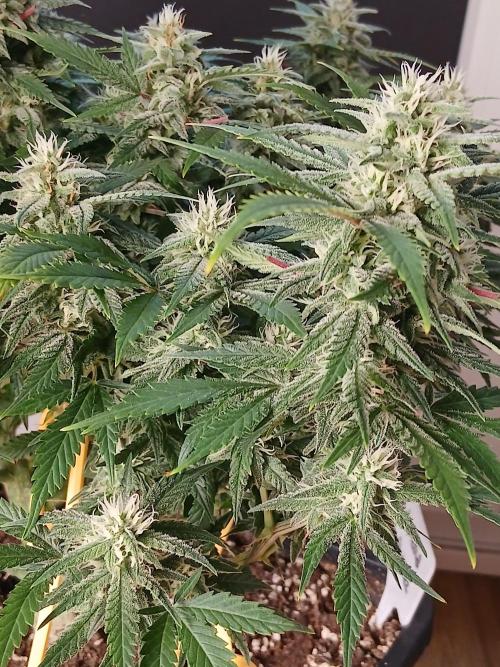 BettyFlores Eine wunderschöne Pflanze, deren Duft und Herbstfärbung der Blätter wirklich speziell ist. Die Blüten sind mit Trichomen übersät und ich kann es kaum erwarten, sie zu rauchen. Während der Aufzucht war sie sehr genügsam und unkompliziert und ist mit allen Widrigkeiten am besten zurecht gekommen. Diese süß-duftende Pflanze ist anfängerfreundlich und verzeiht so manche Unpässlichkeit.